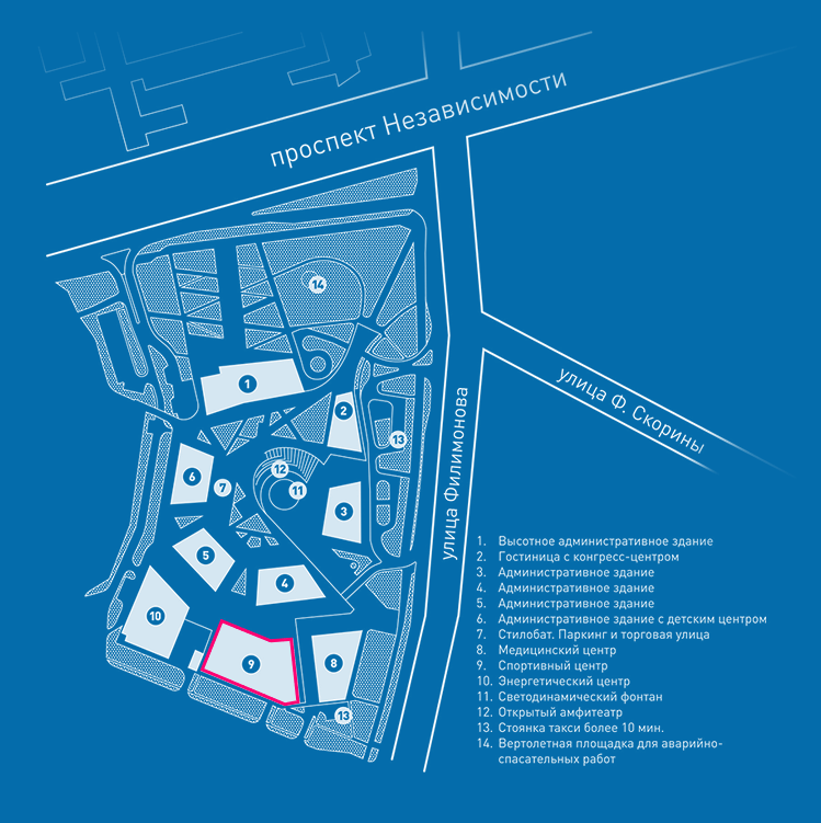 The 7-storey sports center is located in the third line of the complex next to the medical center. The sports center operator JSC «Impuls LT» represents a network of modern sports and health clubs under the brand name «IMPULS» in Lithuania.