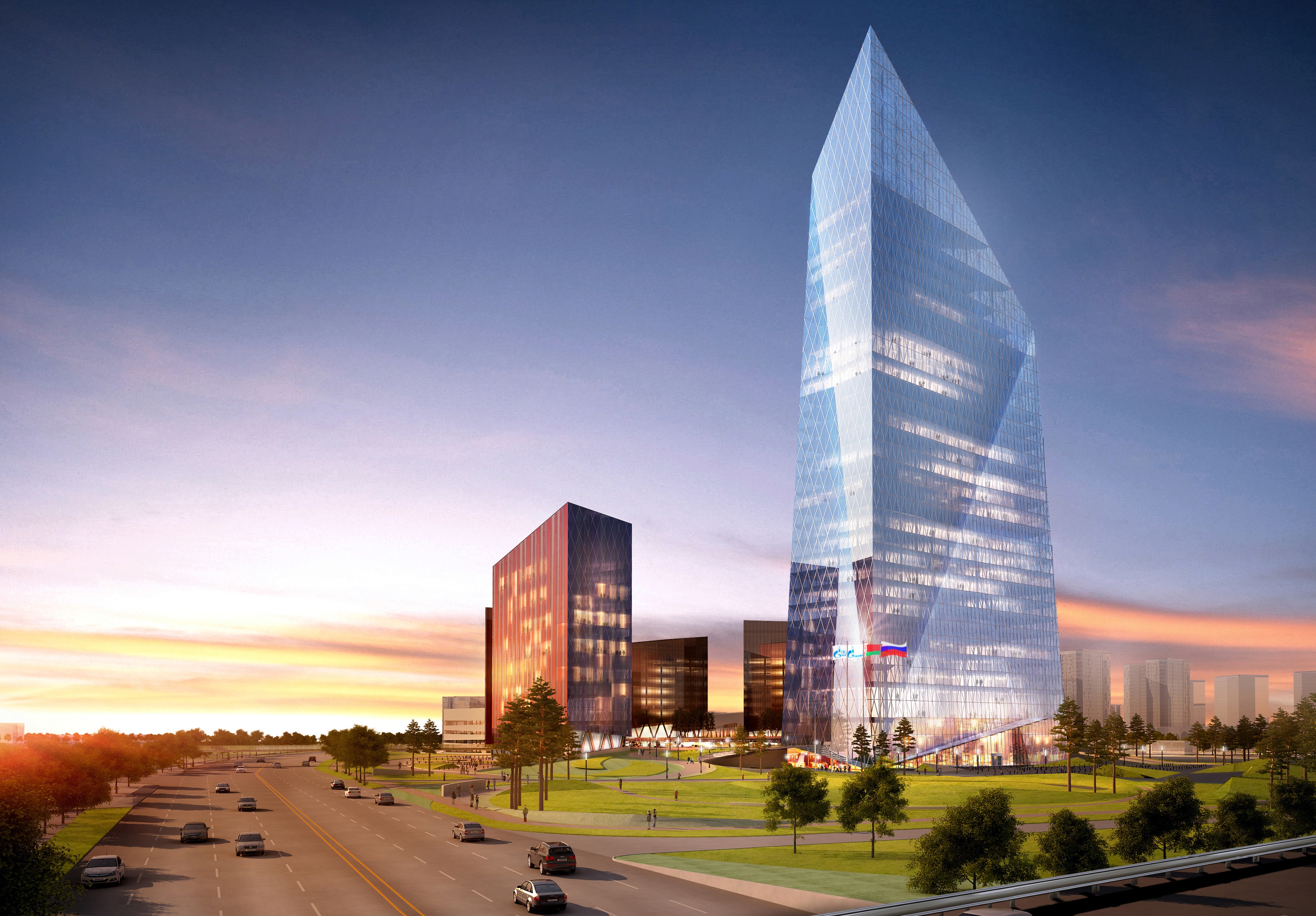 Архитекторы проекта – английский офис международной компании NBBJ — вписали в проект самые передовые градостроительные и технологические решения, которые полностью соответствуют концепции «Силуэт Минска» и градостроительной документации, разработанной специалистами «Минскградо». Центром композиции многофункционального комплекса станет здание штаб-квартиры компаний Группы «Газпром» высотой 189 метров. На сегодня — это самое высокое здание в Республике Беларусь. Строительство такой высоты здания требует высоких стандартов строительства и обслуживания. В частности, непрерывное наблюдение за состоянием несущих конструкций здания как при строительстве, так и в процессе эксплуатации выполняет автоматизированная система мониторинга инженерных конструкций. Помимо штаб-квартиры на земельном участке площадью 8,27 га разместятся еще восемь зданий разной этажности: 4 офисных зданий класса «А», где смогут находиться все желающие разместить свой офис в комфортных и современных условиях. Кроме того, здесь появятся медицинский, спортивный и энергетический центры, гостиница с конгресс-центром мирового бренда Radisson Blu, торговая улица, рестораны высокой кухни и тематические кафе, гриль паб и другие места общественного питания. Энергетический центр станет для всех зданий комплекса источником теплоснабжения, холодоснабжения и электроэнергии. Предусмотрено и общественное пространство для проведения городских и массовых мероприятий с открытым амфитеатром, где летом будет работать светодинамический фонтан, а зимой – городской каток для всех желающих. Общая площадь зданий составит 264 тыс. кв.м.