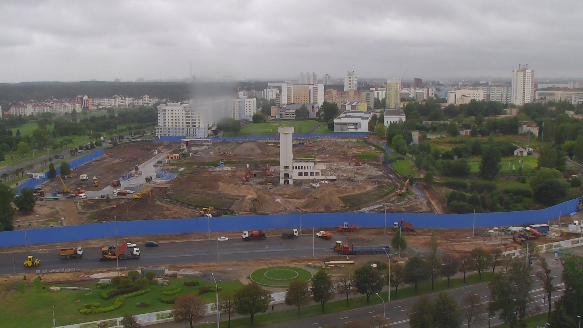 15 сентября 2014 Подготовка территории продолжается Проводится экскавация грунта на территории строительной площадки. Всего было извлечено 480 тыс. куб. м грунта, что превышает объем извлеченного грунта при строительстве торгового центра «Столица» в Минске.